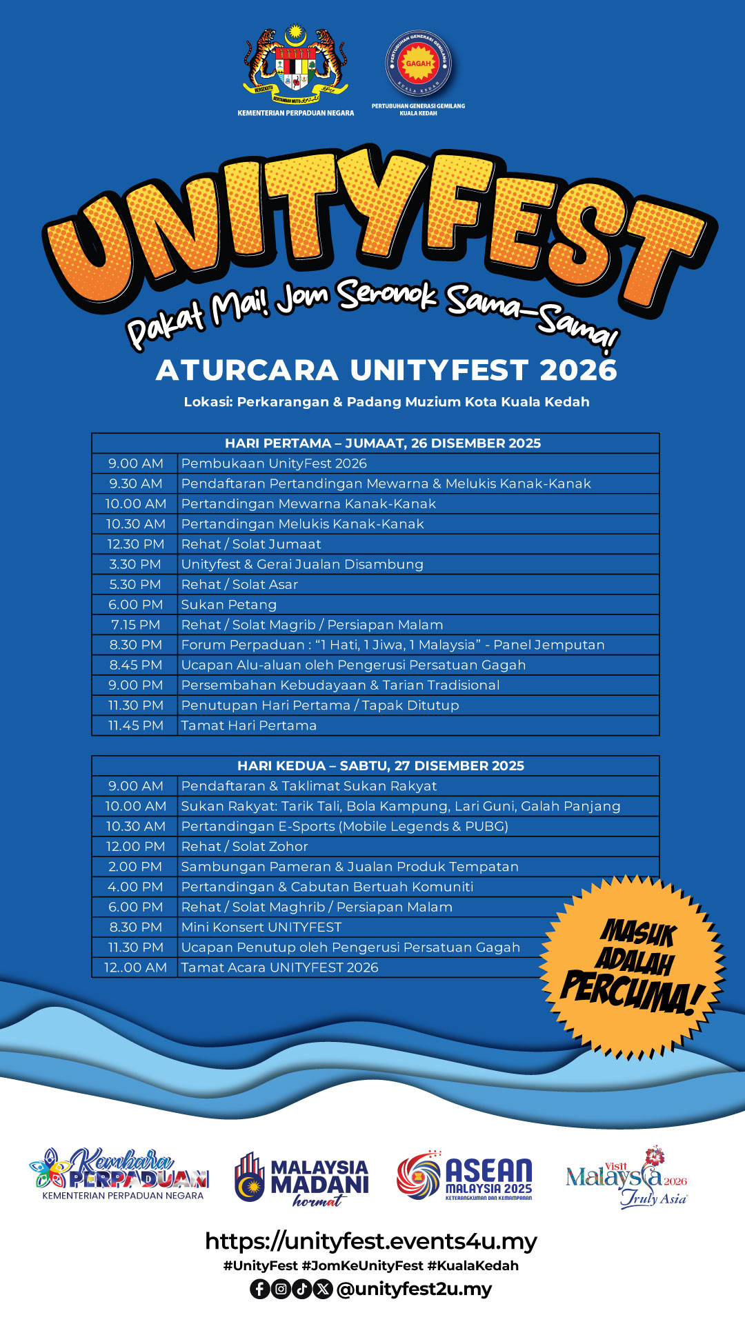 Dengan tema perpaduan sebagai teras utama, UnityFest 2025 diharap menjadi pemangkin kepada hubungan yang lebih erat dalam masyarakat serta mencipta kenangan bermakna yang akan dikenang oleh semua yang terlibat.